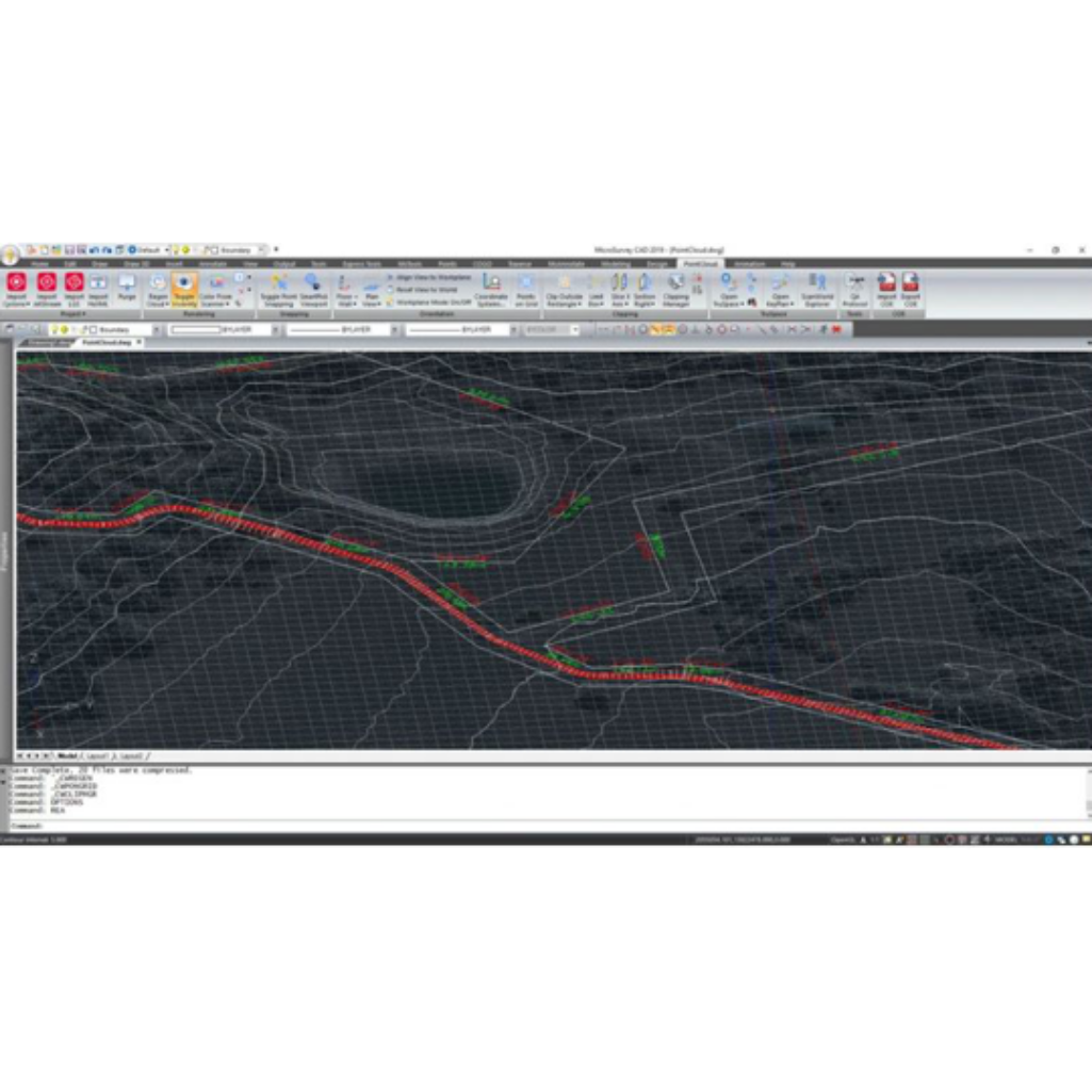 Complete survey drafting, COGO, DTM, traversing, volumes, contouring, point cloud, and data collection device interfacing. MicroSurvey CAD is compatible with field data from all major total stations and data collectors and is fully compatible with AutoCAD.